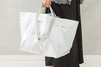 ショップバッグやエコバッグなどでもちろん構いませんが、折り畳みのできる物だと自宅での収納やコインランドリーでの置き場所に困りません。